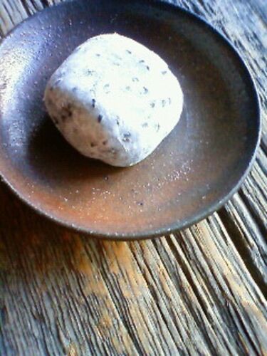 今日は曇り…ですが、ぬくい!ちょっとほっ。写真は胡麻大福。 焼き〆皿がぴったりです。あったかいお茶にあんこが美味しい 季節ですね。ついついお茶…です。そしてオヤツも…。ワタシ の顔も大福みたいに丸くなっております。困りました。贈り物に…と器を選ん…