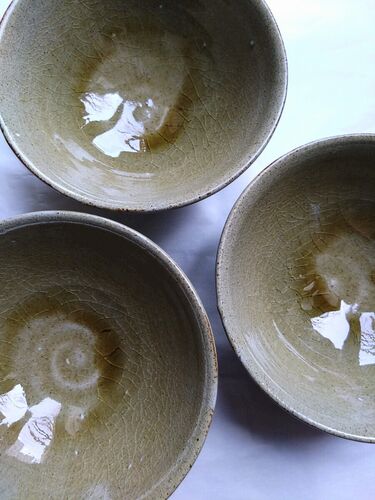 小丼は小さ過ぎることはないので親子丼や山かけ丼、つけ麺なら麺だけ盛る器にぴったりサイズです。具沢山の汁物にもお使いいただけます。藁灰と黒ルリ、どちらも欲しくなります。 ハチミツ色の灰釉碗。浅めなのでご飯茶碗に、小鉢使いにも。と思っていたら日…