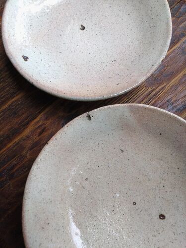久しぶりの粉引き平皿は六寸で。ざっくりした土ならではの存在感もありつつ、ふんわりと柔らかな粉引き。上手く赤みが出ていますね。好みの仕上がりで眺めてはうっとりしています。飴釉もあります。キープしていたいい状態のを入れました、とのこと。どちら…