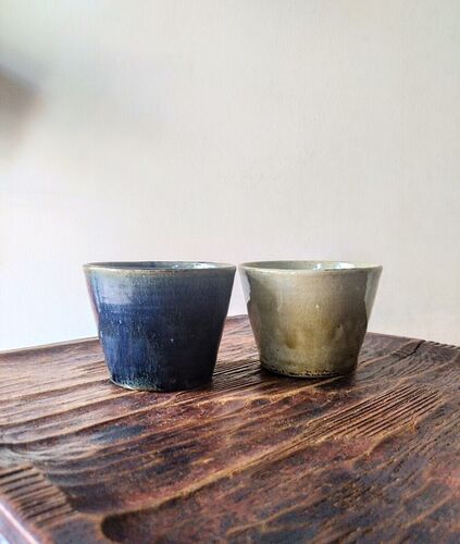大きめ猪口、マグカップ代わりにもなりますが、スープカップにおすすめ。冷製コーンスープやガスパチョに如何でしょうか?色違いで並べてもやはり素敵なのでした。 一年中活躍間違いなしです。
